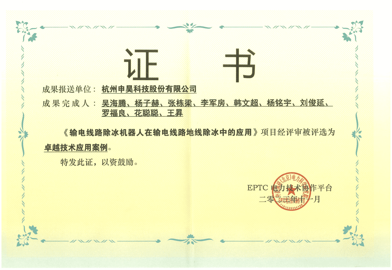 近期,在2023年電力智能巡檢技術應用與創新發展論壇上,頒發了2023年度電力智能巡檢技術應用案例相關的獎項。杭州申昊科技股份有限公司憑借其卓越的技術應用和創新的解決方案,榮獲了一項“卓越技術應用案例”和兩項“創新技術應用案例”,并被授予了“2023年電力行業智能巡檢技術卓越應用單位”的榮譽稱號。